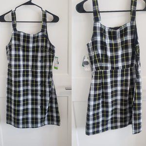 This buttoned dress designed with a matching retro check pattern can be worn alone or over a fine knit sweater