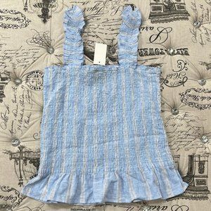 A smocked bodice with a flounce hem elevates the casual style of this cute, ruffled tank top.