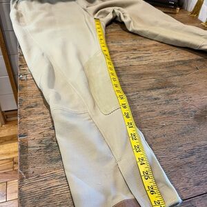 Classic light tan riding breeches with reinforced knee patches for comfort and durability.