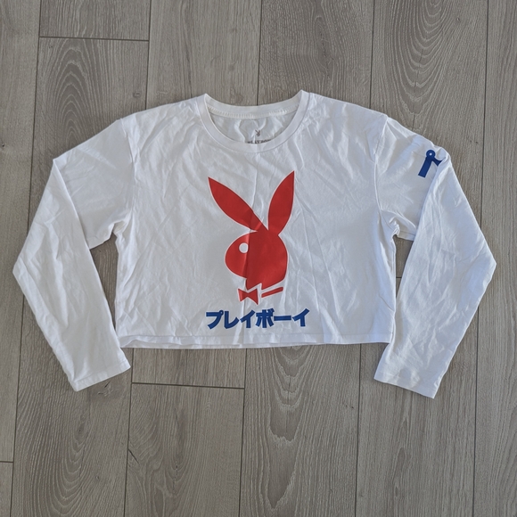 New without tags, super comfy, original play boy cropped shirt, long sleeves, Japanese script on side sleeve