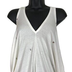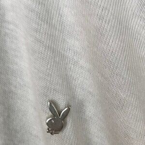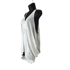 Playboy White Tank Top Or Bathing Suit Cover Up High Low Hem With Playboy Silver Colour Studs All Over The Front Very Oversized Size XS