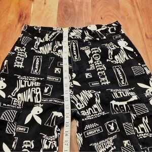 PLAYBOY Y2K Logo Pattern Cargo Pockets Pants Black & White High Rise Wide Leg Pants Trousers.