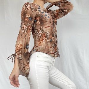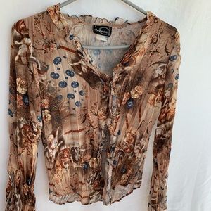 PLEATED blouse size S M earthy Italian art renaissance print Dynamite Woman