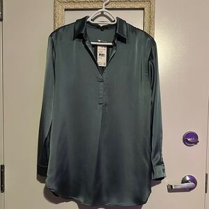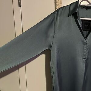 PLEIONE | Anthropologie Dusty Blue Long Sleeve Polo Satin Blouse