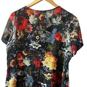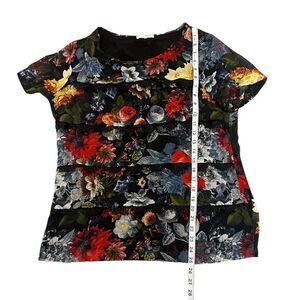 PLEIONE Black Lace Ruffle Floral Scoop Neck Short Sleeve Blouse Top S