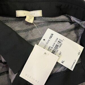 PLEIONE Women's Lightweight Knit Collared Cardigan Sweater - Size XL - NWT . MSRP $68. Color: Slate Black Com. Style: 42329RK. Striped. Long sleeved. 50% polyester, 50% rayon. Contrast: 100% polyester. Made in USA.
