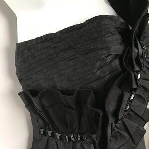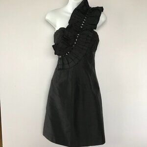 PLENTY party LBD, one-shoulder, silk, ruffle & bling form-fitting dress sz 8