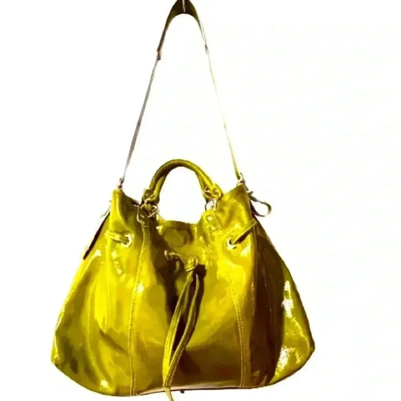 PLINIO VISIONA GREEN PATENTED LEATHER TOTE SHOULDER BAG MADE IN ITALY