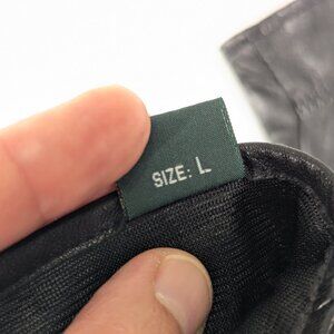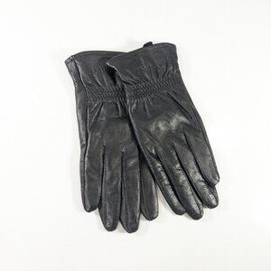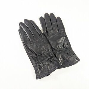 In great condition with a few small marks and a little pinhole on the cuffs where they were attached together. Not marked for the material, feels like a buttery soft leather. The lining in a smooth synthetic material.
