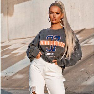 PRETTYLITTLETHING Charcoal Gray Columbia 97 Athletic Graphic Sweatshirt
