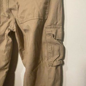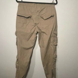 8 Pockets. 2 big ones on each side, side pockets and bum pockets. Drawstring pant cuff. Machine Washable but would benfit from being ironed! Condition: Good Petite size 10. True to size