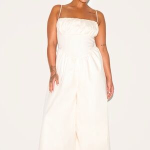 PLUS CREAM PREMIUM RUCHED CORSET DETAIL WIDE LEG JUMPSUIT