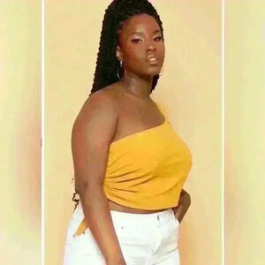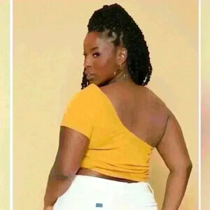 PLUS SIZE ASYMMETRIC RIBBED CROP TOP - MUSTARD size 3x Nwot