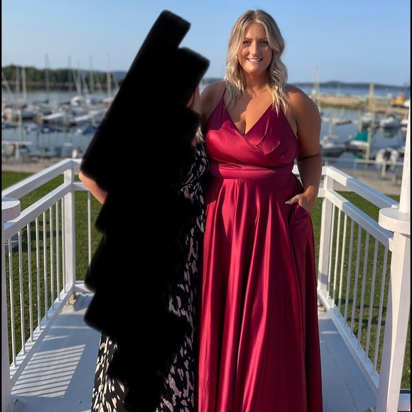 Worn once to a wedding, tie back so it’s adjustable for sizing.