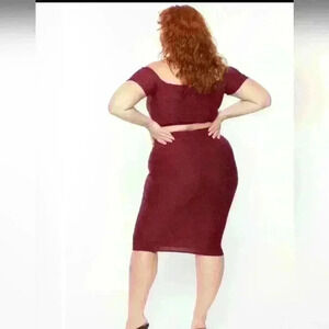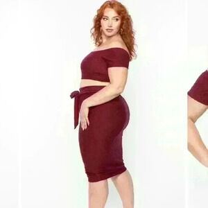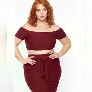 PLUS SIZE OFF THE SHOULDER TEXTURED MATCHING SET - BURGUNDY size 3x NWOT