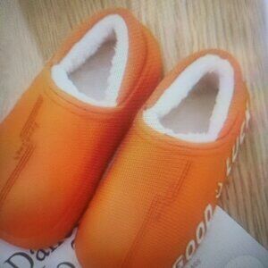 Fur lined w/ knit at heel (feels yummy - no schafing)
