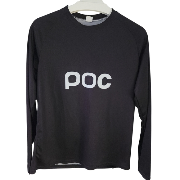 POC, MTB jersey, mountain bike shirt, cycling jersey, men’s activewear, long sleeve biking top, trail riding gear, black jersey, performance wear, bike clothing, medium size, unisex cycling