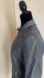 Blue Jean Jacket/Blazer in Faux leather, fully lined, Long sleeved, zip up jacket with 2 front pockets with zipper closure. Material is pliable and not stiff. Size Medium
