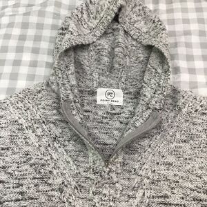 POINT Zero knit shrug poncho hoodie cardigan oversized grey white Large