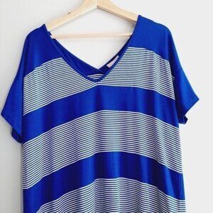 POINTELLE - NEW V-neck Stripe Hi-low Hem Top Blue & White Sz XL