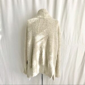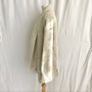POL Women oatmeal Beige Fuzzy Knit Open Front Long Cardigan Pockets Medium