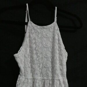 POL | medium | White Lined Floral Lace Adjustable Spaghetti Strap Dress