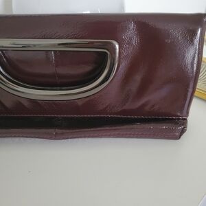 HOBO INTERNATIONAL Vintage Brown Patent Leather Metal Handles Flap Magnetic Clutch