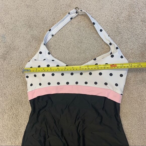 Polkadot halter top one piece swimsuit Sz 12 Black white pink
