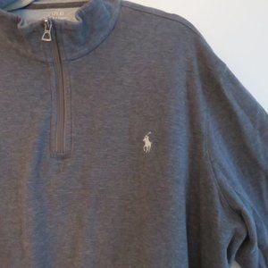 POLO RALPH LAUREN Dark Heathered Gray Cotton 1/4 Zip Pullover Sweater - Size XL