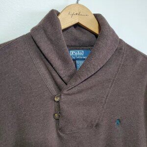 POLO RALPH LAUREN Shawl-Collar Pullover Sweater Sweatshirt Elbow Patch Brown