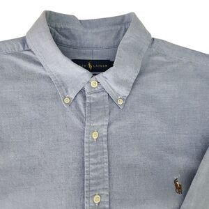 Polo Ralph Lauren, slim fit oxford, stretch dress shirt, classic blue shirt, men's size XXL, casual workwear, preppy style