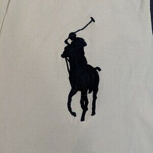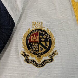 POLO Ralph Lauren Big Pony Embroidered 2 Shirt White Collared Navy Blue Yellow M Medium