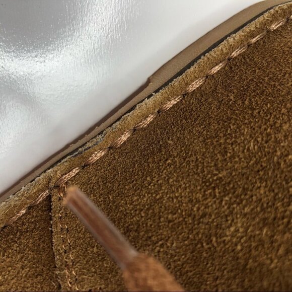POLO by Ralph Lauren camel brown tan suede leather lace-up designer ankle booties for toddler boys. They have the POLO logo stamped on the side of them. These shoes have such beautiful detail to them as they are high quality. Leather upper and lining with a rubber sole. Only worn once. In excellent like new condition minus the three flaws; that being a stain on the tongue and two small stains on the inside (see photos). See photos for details and measurements. $98 USD retail. Toddler baby boys size 7.5.