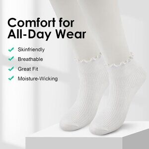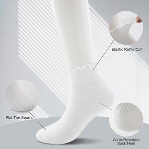 Cotton Breathable Women's Calf Socks: Experience all-day comfort with these calf socks for women crafted from soft cotton fabric. The ruffle cuff adds a delicate feminine touch while allowing breathability for office wear, casual outfits, or light workouts.