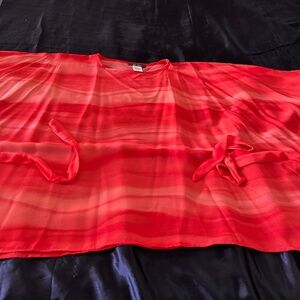 PONCHO, CHIFFON, CORAL, SIZE PLUS, WITH BELT, MADE IN CANADA!, PULL OVER, MR MAX