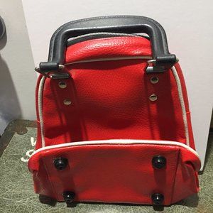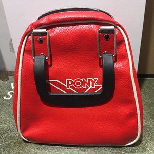 Pony Lightweight Handbag, Color Red, White Trim, 100% Vinyl, Lining, Front Pony Logo, inside Roomy, Bottom Plastic Studs, Plastic Handles, Closure Zipper, Good Condition, Great Bag.
