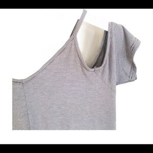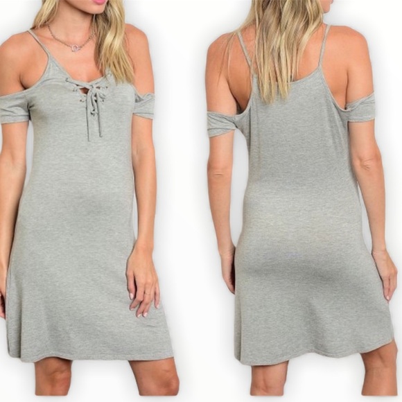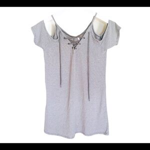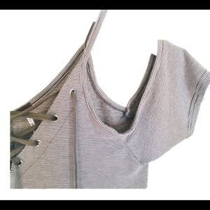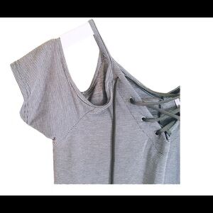 POOF! (Nordstrom) Cold Shoulder Mini Dress With Lace Up Detail Grey Stripe Size Large