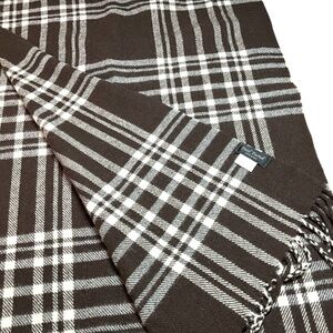 POOL TREND Made in Italy 100% Wool Brown Plaid Blanket Scarf 72” x 20”
