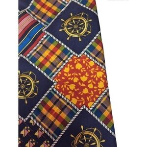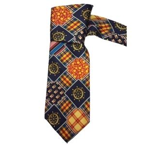 Handsome plaid patchwork nectie by Poolo da Ponte, featuring a sharp nautical theme print