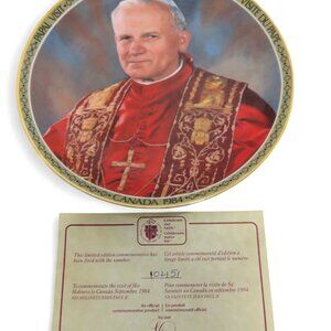 Add a rare touch to your collection with this vintage 1984 Papal Canada Visit plate and figure featuring Pope John Paul II.