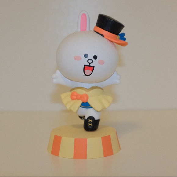 Adorable rabbit figurine wearing a black top hat and yellow outfit. Perfect for collectors.