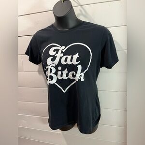 Bold black graphic tee with white heart-shaped lettering that proudly reclaims attitude and self-confidence. Soft cotton, short sleeves, classic fit.