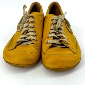 This leather laced shoe for women is wide and has a wide-opening that allows insertion of orthotics.