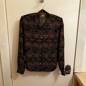 classic PORTS International blouse, size 4, black with multi colour pattern, like new, polyester, says 4 but think 5/6