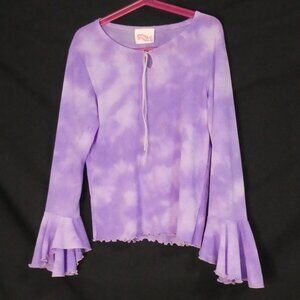 POSITIVE RESULTS | P2P 13 inches measured | Purple Tie Dye Ruffle Sleeve Top