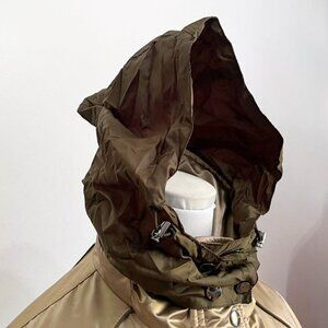POSTCARD GOLD SATIN SKI COAT PANTS 2 PIECES COORDINATED SET, this is a luxury snow winter set including a coat and a ski pants in a magnificent gold satin fabric - Made in Italy - POSTCARD has a signature and iconic reputation from the modern style to the quality of textile . The coat as a regulr length an featurre a full front zip fastening with a snap button covering the zip for a clean look - mock neckline - exposed seaming - welt usable pockets - inside elastic rubber snap button hemline to protect from wind and snow -long sleeves with adjusatble snap button straps at cuffs for a regualr or tapered look and has a hidden zippable hoodie in the neckline - while the pants are in a full length - straight legt - usable zip at cuffs for a flared look to ease snow boots fitting - zipper fly, snap button, belt loops -zipped outter pockets - front metallic engraved medallion - both pieces are lined with a quilted comfy lining - perfect winter outdooring sporty athleisure coordianted set in a very trendy metallic futuristic vibe.