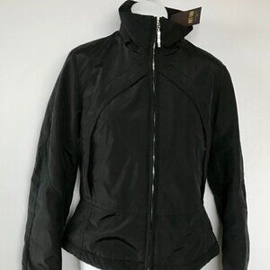 Luxury black ski jacket perfect for spring skiing, light winter weather or everyday transitional jacket into spring or fall.