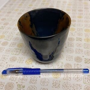 Gorgeous small pottery mug holds 8 ounces can be used as a mug without a handle or you can use it to display your make up brushes or put a little succulent in it. Practical but pretty