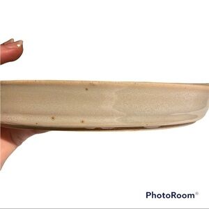 Very pretty ivory and light blue hand blown pottery plate. The perfect trinket holder or could also be used under a plant. Plenty of used for this piece. Signed on the back.