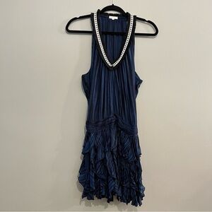 POUPETTE ST BARTH Beline Navy Deep Fringe V-Neck Slim Ruffle Mini Dress